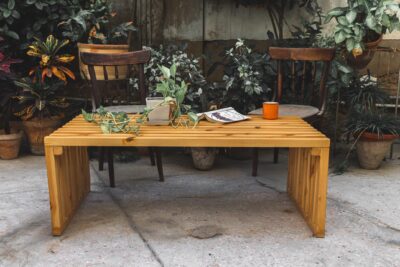 Minimalist wooden tables blend simplicity